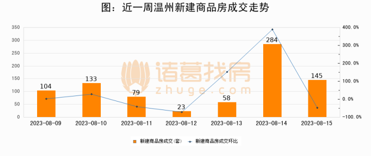 【温州成交日报】08月15日新房成交145套;涨价房源51套