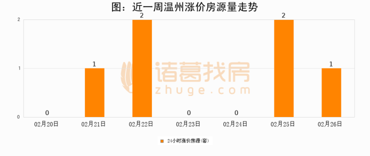 根据诸葛找房数据显示,温州24小时涨价房源量为1套,较02月25日减少1套,环比下降50%。与此同时,涨价房源占比小幅回落,对于购房者来说是一个入市窗口期,购房者可抓住时机入市。