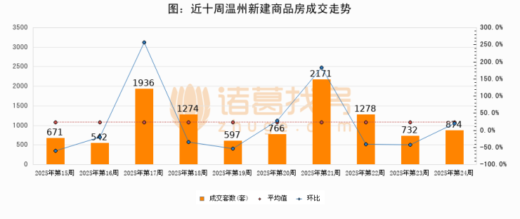 【温州成交周报】第24周新房成交874套,涨价房源9套
