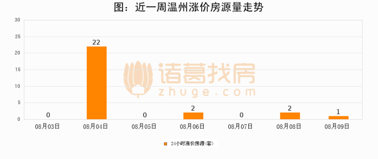 根据诸葛找房数据显示,温州24小时涨价房源量为1套,较08月08日减少1套,环比下降50%。与此同时,涨价房源占比小幅回落,对于购房者来说是一个入市窗口期,购房者可抓住时机入市。