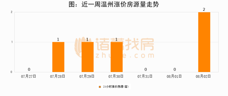 根据诸葛找房数据显示,温州24小时涨价房源量为2套,较08月01日增加2套,环比上涨0%。与此同时,涨价房源占比小幅扩大,业主信心有所提升。
