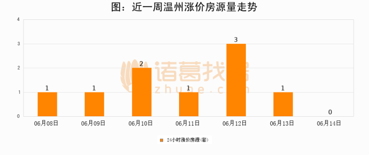 根据诸葛找房数据显示,温州24小时涨价房源量为0套,较06月13日减少1套,环比下降100%。与此同时,涨价房源占比小幅回落,对于购房者来说是一个入市窗口期,购房者可抓住时机入市。