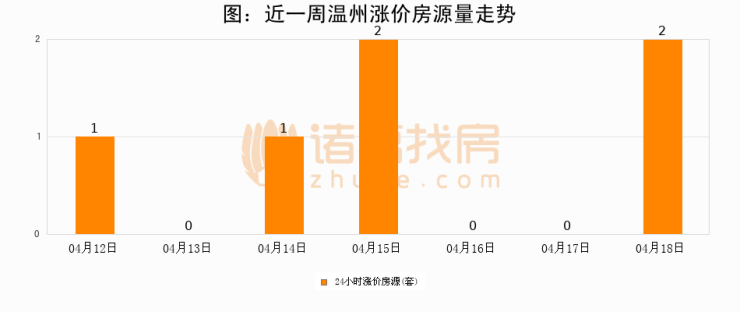 根据诸葛找房数据显示,温州24小时涨价房源量为2套,较04月17日增加2套,环比上涨0%。与此同时,涨价房源占比小幅扩大,业主信心有所提升。