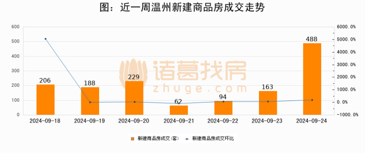 【温州成交日报】09月24日新房成交488套;涨价房源404套