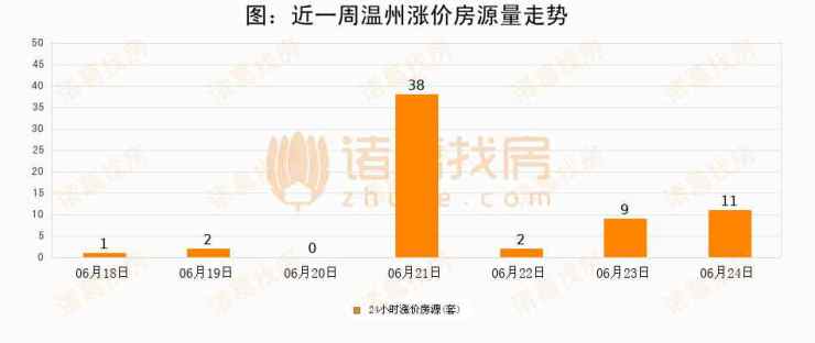 根据诸葛找房数据显示,温州24小时涨价房源量为11套,较06月23日增加2套,环比上涨22.2%。与此同时,涨价房源占比小幅扩大,业主信心有所提升。