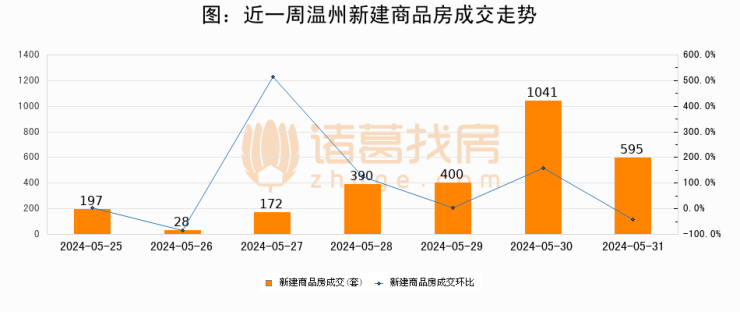 【温州成交日报】05月31日新房成交595套;涨价房源1套