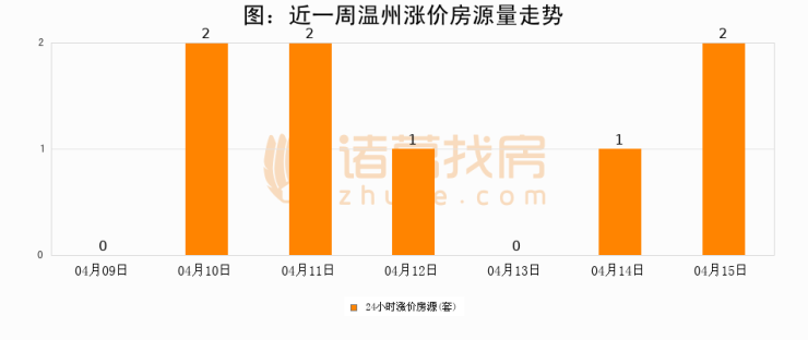 根据诸葛找房数据显示,温州24小时涨价房源量为2套,较04月14日增加1套,环比上涨100%。与此同时,涨价房源占比小幅扩大,业主信心有所提升。