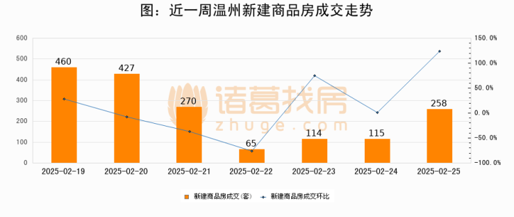 【温州成交日报】02月25日新房成交258套;涨价房源2套