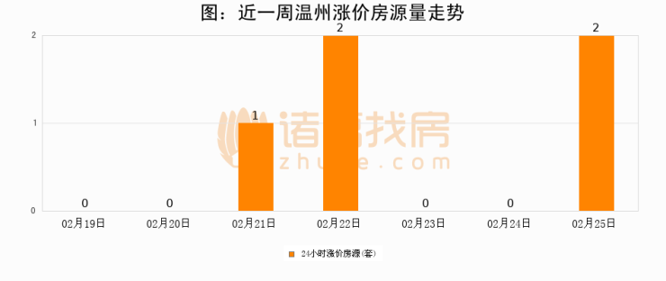 根据诸葛找房数据显示,温州24小时涨价房源量为2套,较02月24日增加2套,环比上涨0%。与此同时,涨价房源占比小幅扩大,业主信心有所提升。