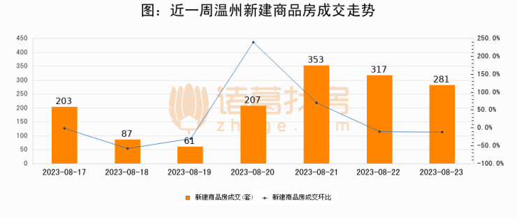 【温州成交日报】08月23日新房成交281套;涨价房源8套