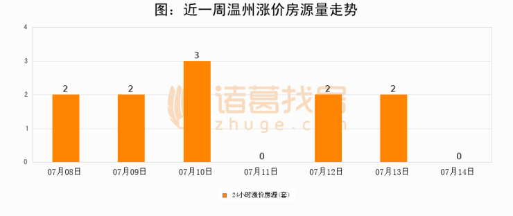 根据诸葛找房数据显示,温州24小时涨价房源量为0套,较07月13日减少2套,环比下降100%。与此同时,涨价房源占比小幅回落,对于购房者来说是一个入市窗口期,购房者可抓住时机入市。