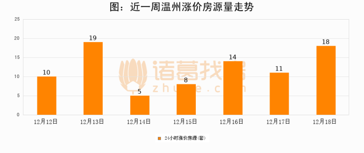 根据诸葛找房数据显示,温州24小时涨价房源量为18套,较12月17日增加7套,环比上涨63.6%。与此同时,涨价房源占比小幅扩大,业主信心有所提升。