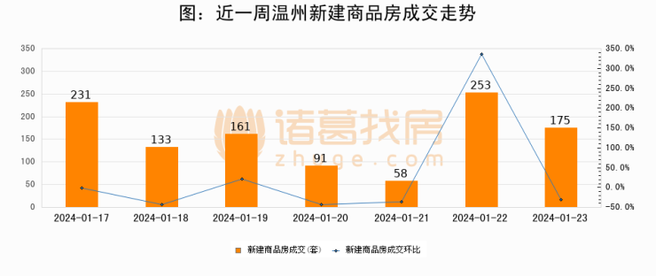 【温州成交日报】01月23日新房成交175套;涨价房源5套