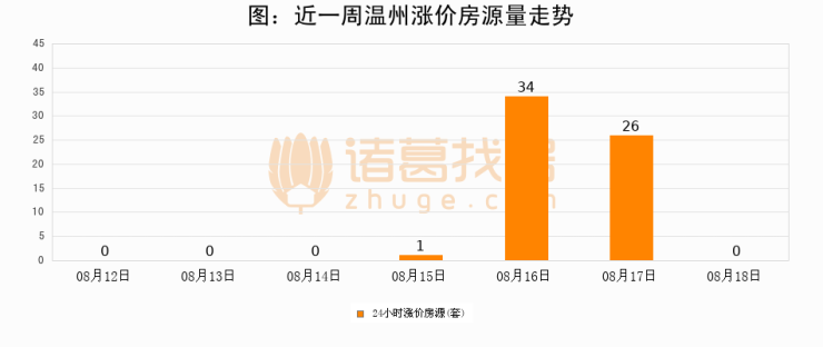 根据诸葛找房数据显示,温州24小时涨价房源量为0套,较08月17日减少26套,环比下降100%。与此同时,涨价房源占比小幅回落,对于购房者来说是一个入市窗口期,购房者可抓住时机入市。