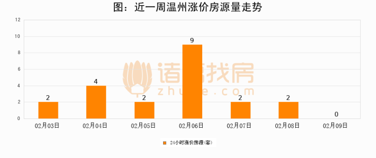 根据诸葛找房数据显示,温州24小时涨价房源量为0套,较02月08日减少2套,环比下降100%。与此同时,涨价房源占比小幅回落,对于购房者来说是一个入市窗口期,购房者可抓住时机入市。