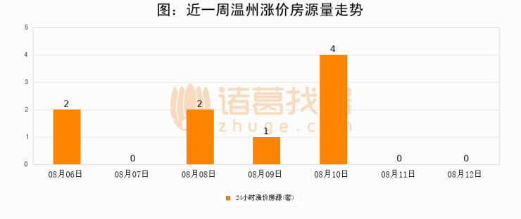 根据诸葛找房数据显示,温州24小时涨价房源量为0套,较08月11日持平。