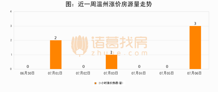 根据诸葛找房数据显示,温州24小时涨价房源量为3套,较07月05日增加3套,环比上涨0%。与此同时,涨价房源占比小幅扩大,业主信心有所提升。