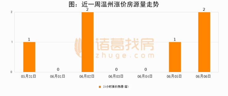 根据诸葛找房数据显示,温州24小时涨价房源量为2套,较06月05日增加1套,环比上涨100%。与此同时,涨价房源占比小幅扩大,业主信心有所提升。