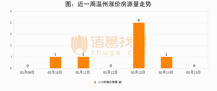 根据诸葛找房数据显示,温州24小时涨价房源量为0套,较05月14日减少1套,环比下降100%。与此同时,涨价房源占比小幅回落,对于购房者来说是一个入市窗口期,购房者可抓住时机入市。