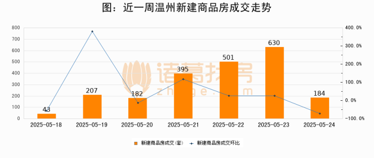 【温州成交日报】05月24日新房成交184套;涨价房源1套