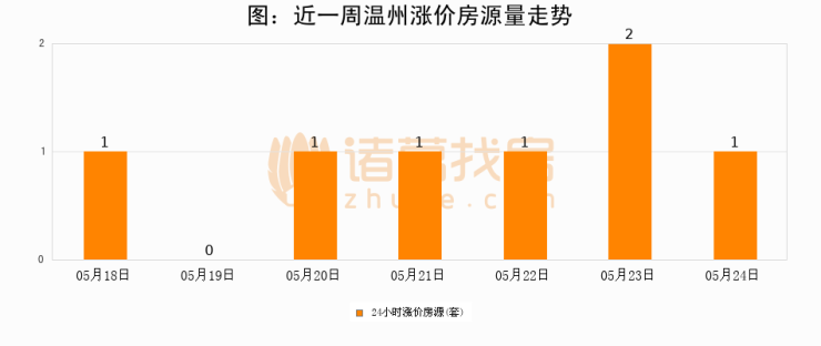 根据诸葛找房数据显示,温州24小时涨价房源量为1套,较05月23日减少1套,环比下降50%。与此同时,涨价房源占比小幅回落,对于购房者来说是一个入市窗口期,购房者可抓住时机入市。