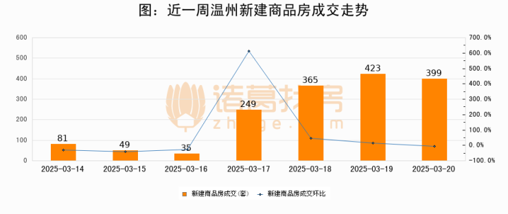 【温州成交日报】03月20日新房成交399套;涨价房源2套