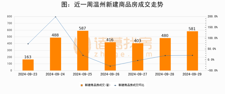 【温州成交日报】09月29日新房成交581套;涨价房源589套