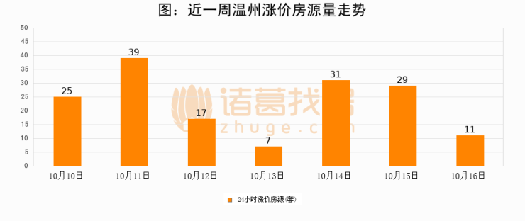 根据诸葛找房数据显示,温州24小时涨价房源量为11套,较10月15日减少18套,环比下降62.1%。与此同时,涨价房源占比小幅回落,对于购房者来说是一个入市窗口期,购房者可抓住时机入市。