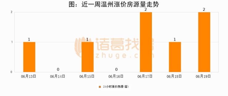 根据诸葛找房数据显示,温州24小时涨价房源量为2套,较06月18日增加1套,环比上涨100%。与此同时,涨价房源占比小幅扩大,业主信心有所提升。
