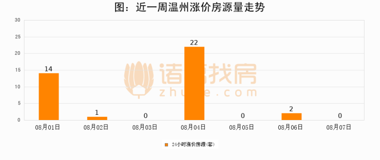 根据诸葛找房数据显示,温州24小时涨价房源量为0套,较08月06日减少2套,环比下降100%。与此同时,涨价房源占比小幅回落,对于购房者来说是一个入市窗口期,购房者可抓住时机入市。