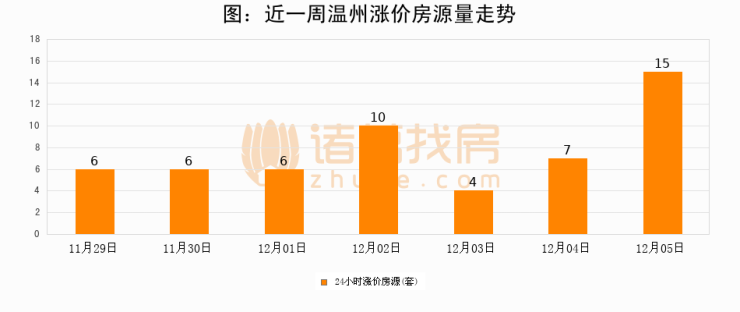 根据诸葛找房数据显示,温州24小时涨价房源量为15套,较12月04日增加8套,环比上涨114.3%。与此同时,涨价房源占比小幅扩大,业主信心有所提升。