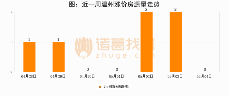 根据诸葛找房数据显示,温州24小时涨价房源量为0套,较05月03日减少2套,环比下降100%。与此同时,涨价房源占比小幅回落,对于购房者来说是一个入市窗口期,购房者可抓住时机入市。