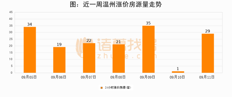 根据诸葛找房数据显示,温州24小时涨价房源量为29套,较09月10日增加28套,环比上涨2800%。与此同时,涨价房源占比小幅扩大,业主信心有所提升。