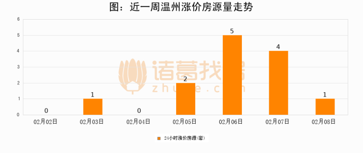 根据诸葛找房数据显示,温州24小时涨价房源量为1套,较02月07日减少3套,环比下降75%。与此同时,涨价房源占比小幅回落,对于购房者来说是一个入市窗口期,购房者可抓住时机入市。
