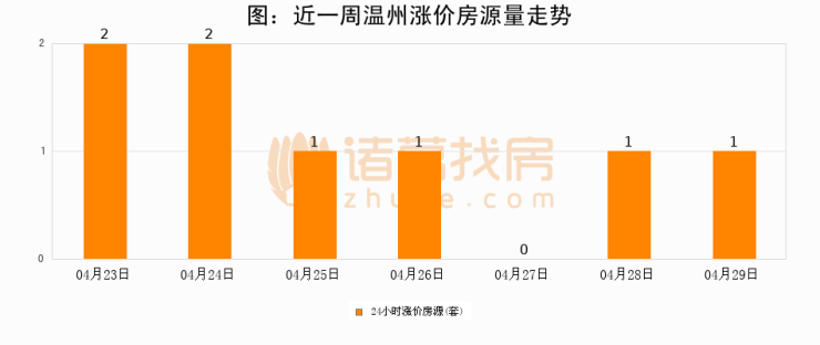 根据诸葛找房数据显示,温州24小时涨价房源量为1套,较04月28日持平。