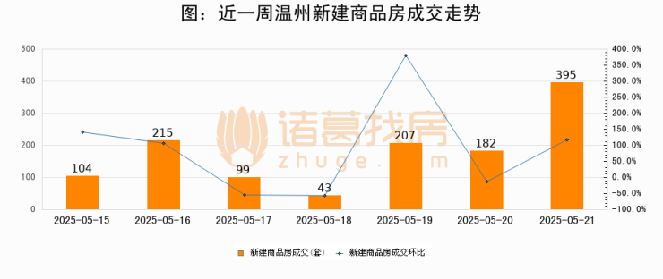【温州成交日报】05月21日新房成交395套;涨价房源1套