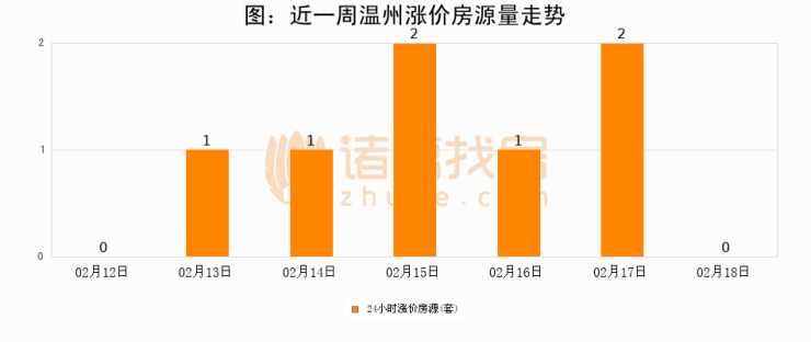 根据诸葛找房数据显示,温州24小时涨价房源量为0套,较02月17日减少2套,环比下降100%。与此同时,涨价房源占比小幅回落,对于购房者来说是一个入市窗口期,购房者可抓住时机入市。