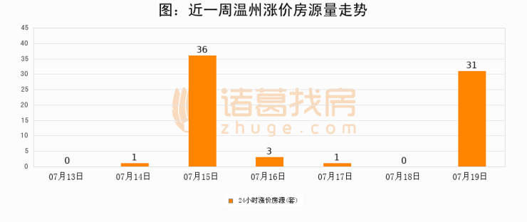 根据诸葛找房数据显示,温州24小时涨价房源量为31套,较07月18日增加31套,环比上涨0%。与此同时,涨价房源占比小幅扩大,业主信心有所提升。