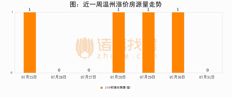 根据诸葛找房数据显示,温州24小时涨价房源量为0套,较07月30日减少1套,环比下降100%。与此同时,涨价房源占比小幅回落,对于购房者来说是一个入市窗口期,购房者可抓住时机入市。
