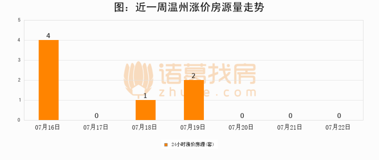 根据诸葛找房数据显示,温州24小时涨价房源量为0套,较07月21日持平。
