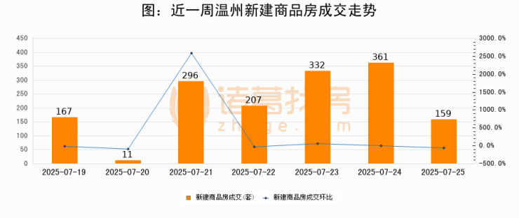 【温州成交日报】07月25日新房成交159套;涨价房源1套