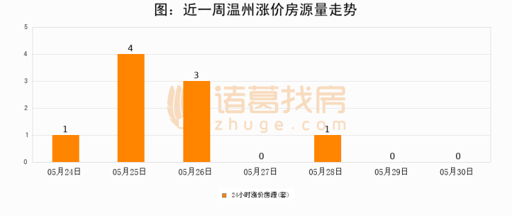 根据诸葛找房数据显示,温州24小时涨价房源量为0套,较05月29日持平。