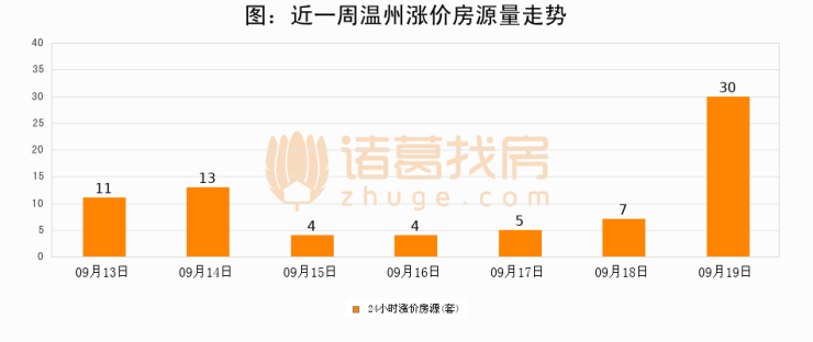 根据诸葛找房数据显示,温州24小时涨价房源量为30套,较09月18日增加23套,环比上涨328.6%。与此同时,涨价房源占比小幅扩大,业主信心有所提升。