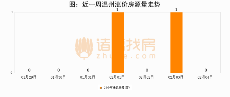 根据诸葛找房数据显示,温州24小时涨价房源量为0套,较02月03日减少1套,环比下降100%。与此同时,涨价房源占比小幅回落,对于购房者来说是一个入市窗口期,购房者可抓住时机入市。