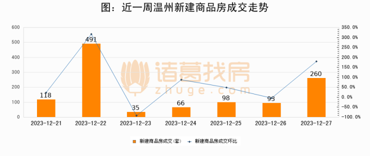 【温州成交日报】12月27日新房成交260套;涨价房源5套