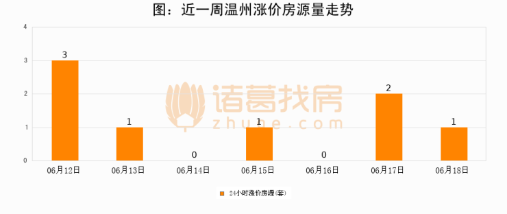 根据诸葛找房数据显示,温州24小时涨价房源量为1套,较06月17日减少1套,环比下降50%。与此同时,涨价房源占比小幅回落,对于购房者来说是一个入市窗口期,购房者可抓住时机入市。