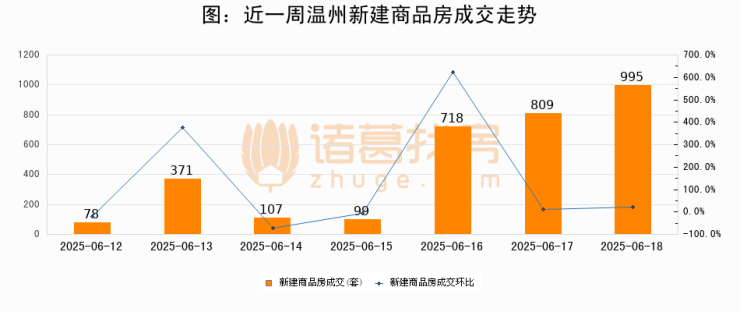 【温州成交日报】06月18日新房成交995套;涨价房源1套