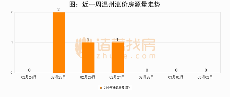 根据诸葛找房数据显示,温州24小时涨价房源量为0套,较03月01日持平。