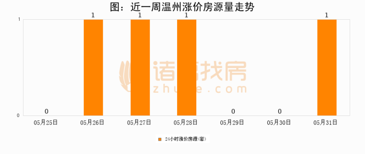 根据诸葛找房数据显示,温州24小时涨价房源量为1套,较05月30日增加1套,环比上涨0%。与此同时,涨价房源占比小幅扩大,业主信心有所提升。