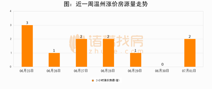 根据诸葛找房数据显示,温州24小时涨价房源量为2套,较06月30日增加2套,环比上涨0%。与此同时,涨价房源占比小幅扩大,业主信心有所提升。